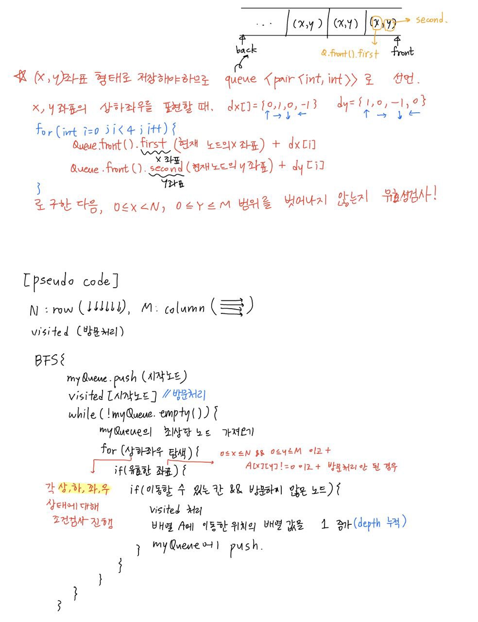 //큐에 시작점(x,y) push